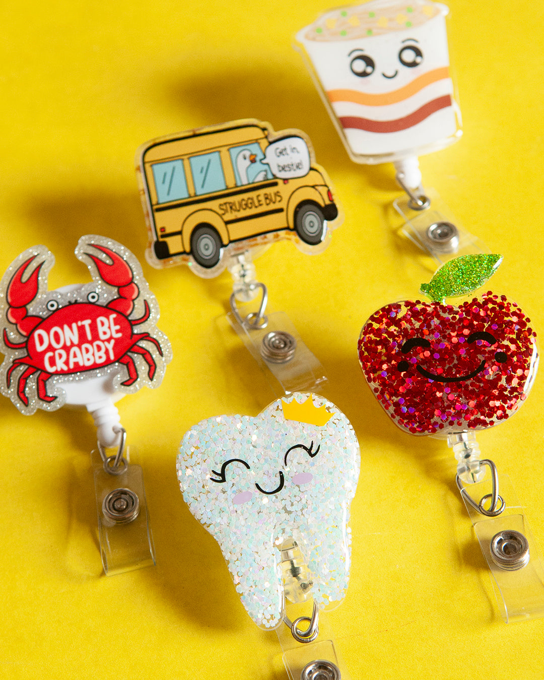 Badge reels are equipped with alligator clips for a variety of ways to wear them! Belt, shirt, pocket, shirt hem, you name it.
