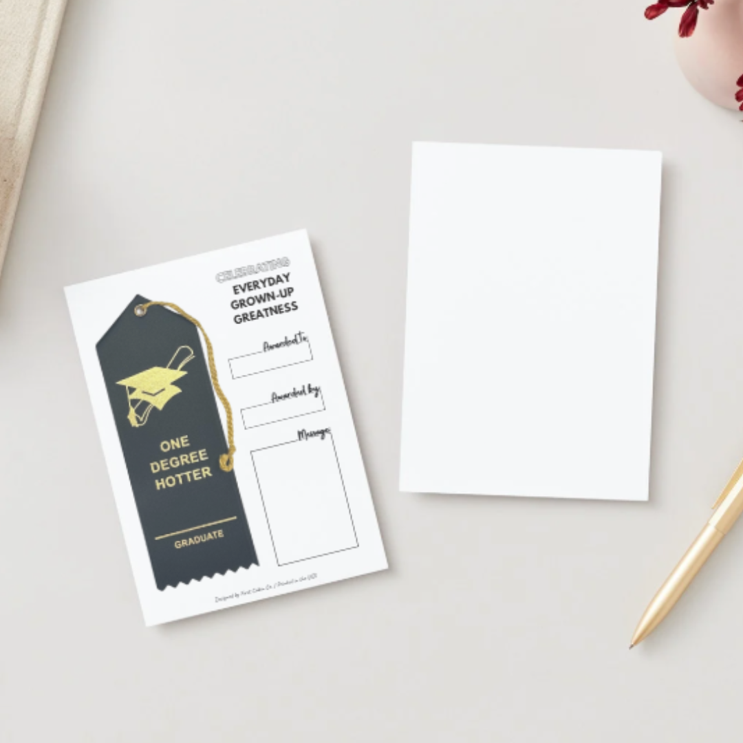 Remember those ribbons you used to get as a kid for being the fastest runner or the best speller? Well, we've reinvented them for the adult world. The "The One Hotter" award ribbon is better than any graduation greeting card.