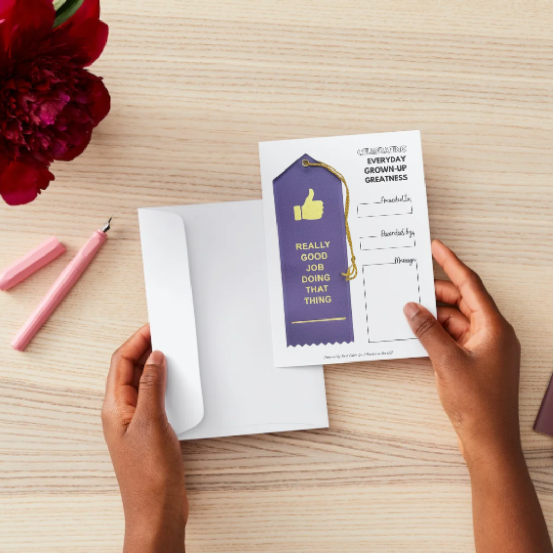 Remember those ribbons you used to get as a kid for being the fastest runner or the best speller? Well, we've reinvented them for the adult world. Who says kids should have all the fun? Award ribbon keepsake for someone who did a good job doing that thing, even if you're not sure how to put it into words.