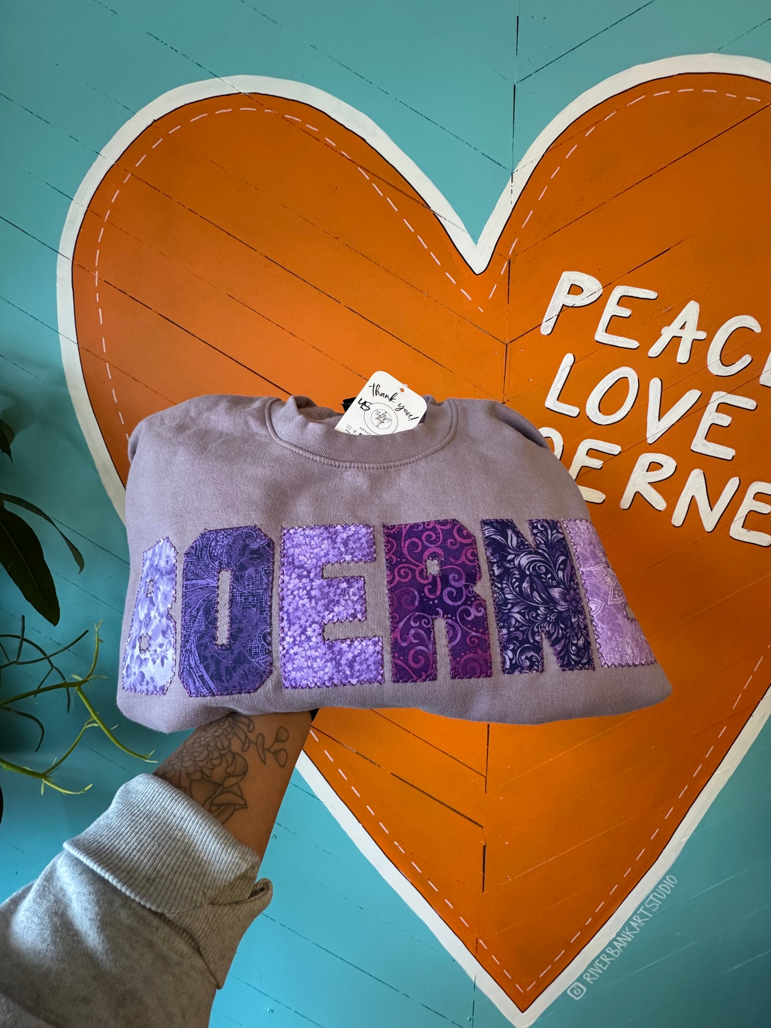 Handmade with love. Super soft crew neck sweatshirt.  Letters are made from vintage fabric/sheets and are unique to each sweater.